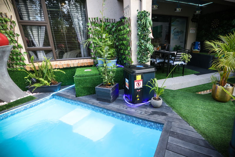 Explore the elegant and inviting spaces of Sunrise Apartment through our gallery. Every detail is designed for comfort and style, from the modern, fully equipped kitchen and cozy living area to the serene bedrooms and beautifully landscaped private garden. Enjoy a glimpse of the heated pool and outdoor spaces, perfect for relaxation. Located in Brentwood Park, Benoni, Sunrise Apartment offers a luxurious retreat just minutes from O.R. Tambo International Airport.
